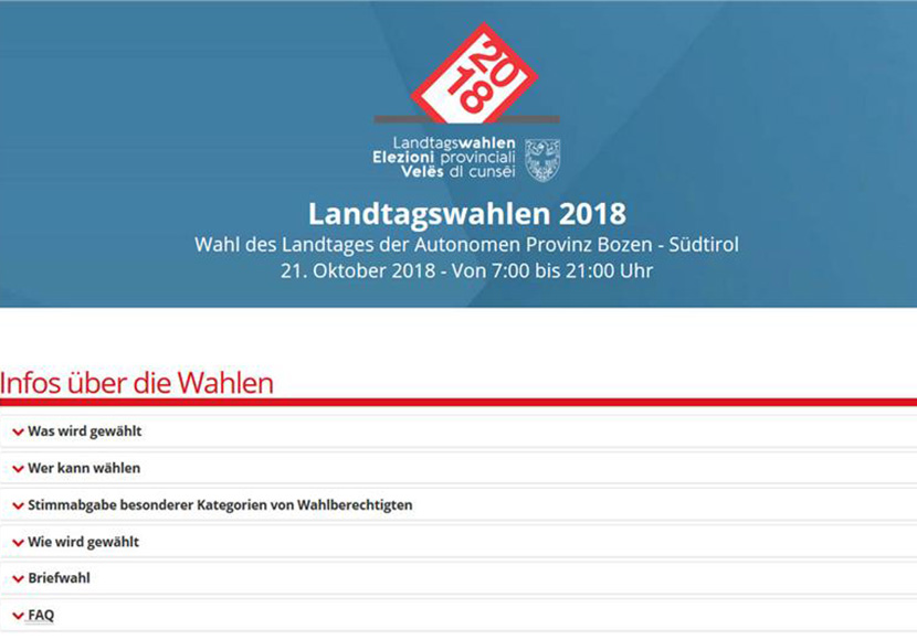 Der Internetauftritt ist vom Landesamt für institutionelle Angelegenheiten in Zusammenarbeit mit der Südtirol Informatik AG Siag eingerichtet und neu gestaltet worden. Neu sind das Logo, die Grafik und das Corporate Identity für die Wahlmaterialien. Eine weitere Neuerung stellt die englische Version der einleitenden Informationen als Hilfestellung für ausländische Bürger dar. Zusätzlich zu den wichtigsten Informationen zu Wahlmodus und Wahlmöglichkeiten finden sich auch die häufig gestellten Fragen in einem FAQ-Fenster, über das Bürger mit der Verwaltung interagieren und Antworten auf neue Fragen erhalten können.