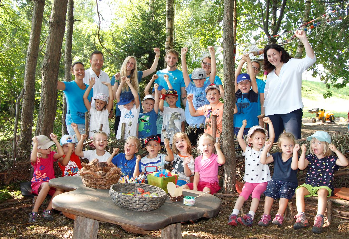 Im Konzept der Waldkindergärten stehen die Erfahrungen, die Bewegung und der unmittelbare Aufenthalt in der Natur im Mittelpunkt. Die Witterungsverhältnisse spielen da oft eine untergeordnete Rolle, wie die Leiterin Susanne Windisch bestätigt: „Die Kinder sind im Winter im sogenannten „Zwiebellook“ unterwegs und können sich dadurch in den kälteren Monaten Schicht für Schicht ausziehen. Mit Matschanzügen, Regenhüten und guten Schuhen sind die Kinder das ganze Jahr im Freien unterwegs. Jetzt im heißen Sommer ziehen wir uns zum Singen, Basteln oder Spielen oft in den schattigen Wald zurück. Sollte es durch ein Gewitter einmal wirklich ungemütlich werden, dann steht uns das beheizbare Waldhaus zur Verfügung.“
