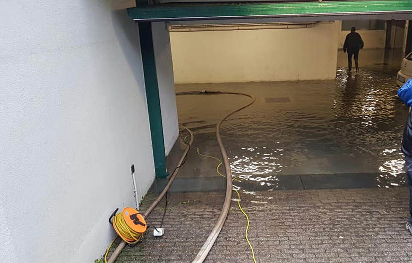 Mit mehreren Wasserpumpen rückten die Wehrmänner der Freiwilligen Feuerwehr Seis an, um die Garage des Wohnhauses wieder von den großen Wassermengen zu befreien.