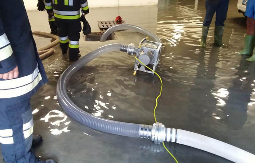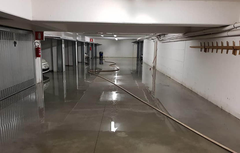 Mit mehreren Wasserpumpen rückten die Wehrmänner der Freiwilligen Feuerwehr Seis an, um die Garage des Wohnhauses wieder von den großen Wassermengen zu befreien.