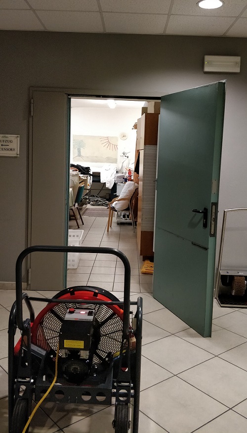Die Feuerwehr kontrollierte das Brandgut und führte die Rauchbelüftungsmaßnahmen im betroffenen Stockwerk durch. Verletzt wurde beim Brand glücklicherweise niemand.