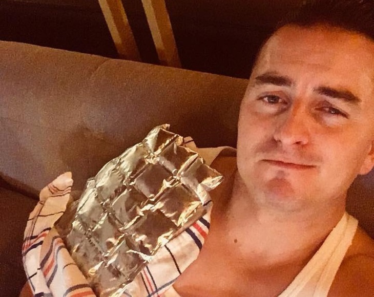 Im dazu geposteten Selfie, sitzt Gabalier im Unterleibchen mit einem silbernen Eiswürfel-Pad auf der Schulter.