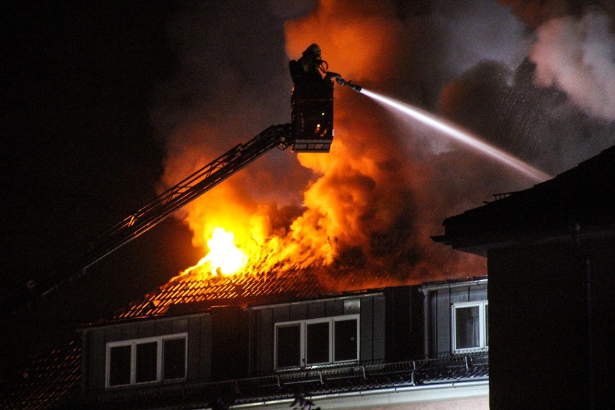 Nach ersten Informationen ist der Brand gegen 20.25 Uhr im Dachstuhl des Gebäudes ausgebrochen und erforderte einen Großeinsatz der Ersthelfer.