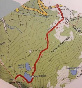 Percorso: Il punto di partenza è Malga Rolle (1895 m), che si trova a circa un chilometro oltre passo Rolle, provenendo da San Martino di Castrozza.  Da qui, attraversata la statale, si segue il segnavia 348 in direzione dei laghi di Colbricon a quota 1922, che si raggiugono in circa 40 minuti. Un breve tratto in salita conduce dai laghi al passo, dove si trova la croce di An der Front.