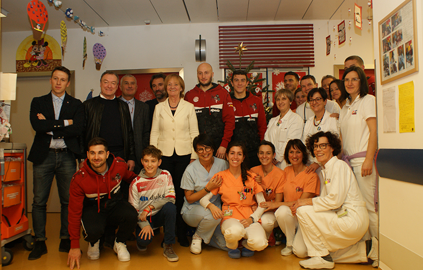 Auch heuer besuchten wieder einige Spieler und Funktionäre des FC Südtirols die kleinen Patientinnen und Patienten auf der Abteilung Pädiatrie im Landeskrankenhaus Bozen. Die Delegation wurde vom Direktor des Gesundheitsbezirks Bozen Umberto Tait, in Begleitung von der Landesrätin Martha Stocker und von Dr.in Laura Battisti von der Abteilung Pädiatrie, freudig empfangen. „Immer wieder begrüße ich gerne die Spieler und Funktionäre des FC Südtirols. Ihr Besuch, gerade jetzt in der Vorweihnachtszeit, beschert den eingelieferten Kindern, die momentan nicht so glückliche Zeiten durchleben, Momente großer Freude und Unbeschwertheit“, so Tait.