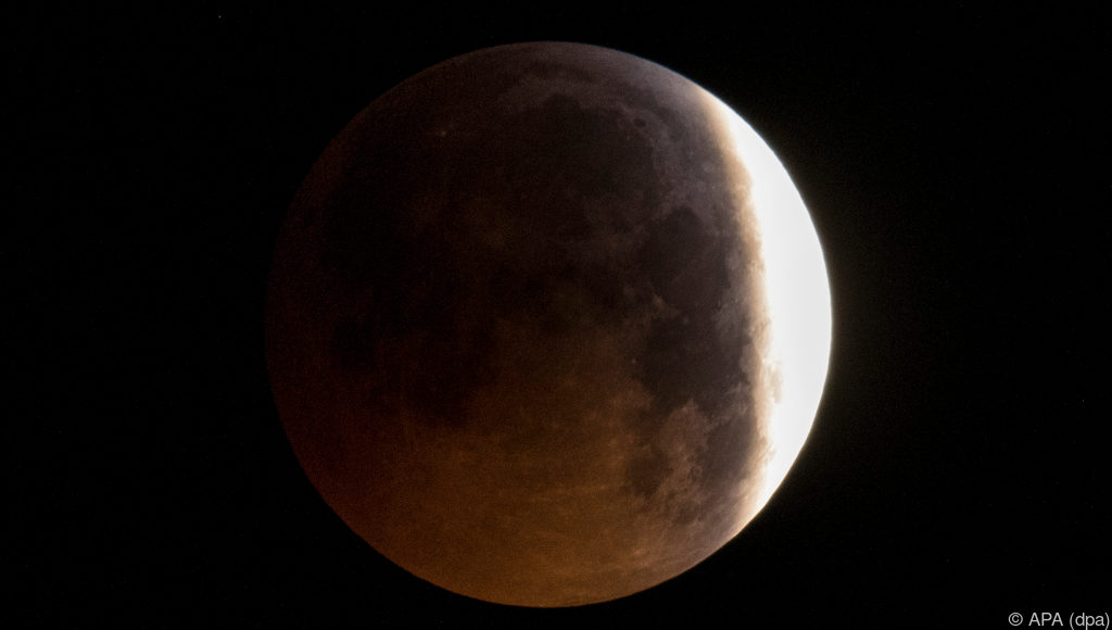 Bis 6.44 Uhr und damit bis in die Morgendämmerung dauert die totale Mondfinsternis noch. Um 7.46 Uhr geht der Mond partiell verfinstert unter.