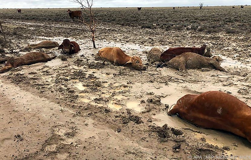 Etwa die Hälfte der 25 Millionen Rinder in Australien werden in Zuchtbetrieben in Queensland gehalten. Viele Viehzüchter fürchten nun um ihre Existenz. Queenslands Regierungschefin Annastacia Palaszczuk sagte, sie habe bei einem Besuch in den Hochwassergebieten ein Meer aus toten Rindern gesehen.