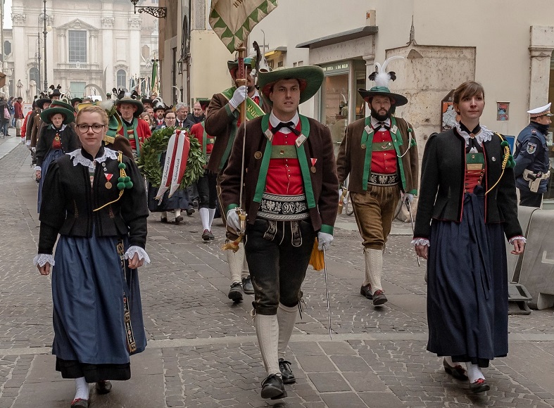 Nach der Meldung und Frontabschreitung marschierten die Schützen und Abordnungen, aus dem gesamten historischen Tirol, zum Andreas-Hofer-Denkmal im Stadtteil Cittadella. Dort liegt die Todesstätte des Freiheitskämpfers.