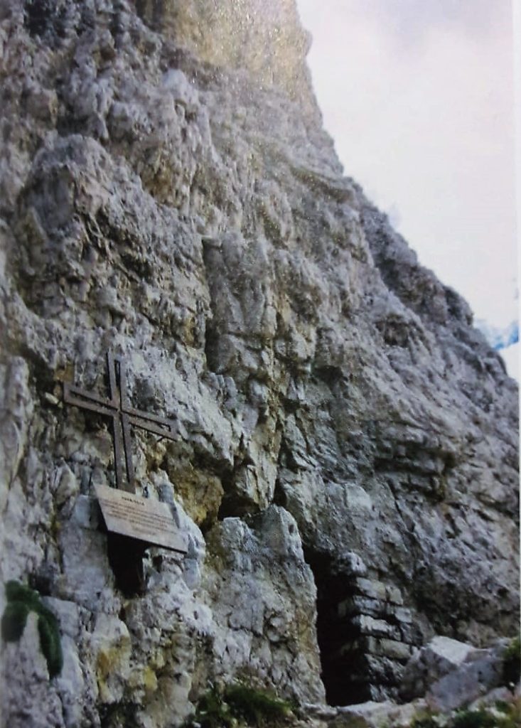 Su iniziativa del Feldkurat Hosp, che già alla fine del 1915 utilizzava il punto più alto come vedetta, nel gennaio del 1916 cominciò la costruzione di postazioni protette sulla montagna appena sotto la vetta, usando cariche di esplosivo per scavare la roccia. A servizio delle stesse, si realizzò anche una via di salita sul versante nord-orientale, che però era troppo esposta alla vista del nemico e quindi percorribile solo durante la notte. In alternativa, nella primavera del 1916 si realizzarono una seconda „scala“ dentro al camino nord, molto più protetta, ed anche un montacarichi.