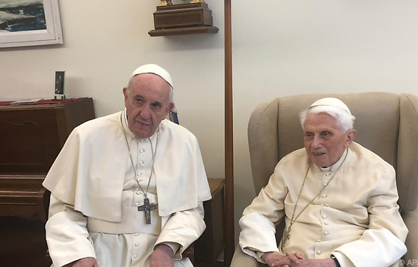 Als erster Gratulant war Papst Franziskus bei seinem im Jahr 2013 zurückgetretenen Vorgänger. Franziskus habe damit gleich auch seinen traditionellen Osterbesuch bei Benedikt absolviert, teilte der Vatikan mit. Ein anschließend verbreitetes Foto zeigt Franziskus und seinen Amtsvorgänger nebeneinander sitzend: der Papst auf einem Stuhl, neben ihm Benedikt XVI. in einem Sessel.