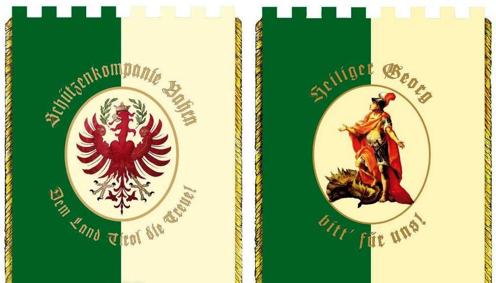 Die neue Vahrner Kompaniefahne ist in den Schützenfarben weiß-grün gehalten. Auf einer Seite ist der Vahrner Kirchenpatron mit dem Schriftzug „Hl. Georg bitt´ für uns!“ abgebildet. Die andere Seite zeigt einen großen Tiroler Adler mit dem Schriftzug „Schützenkompanie Vahrn – dem Land Tirol die Treue!“