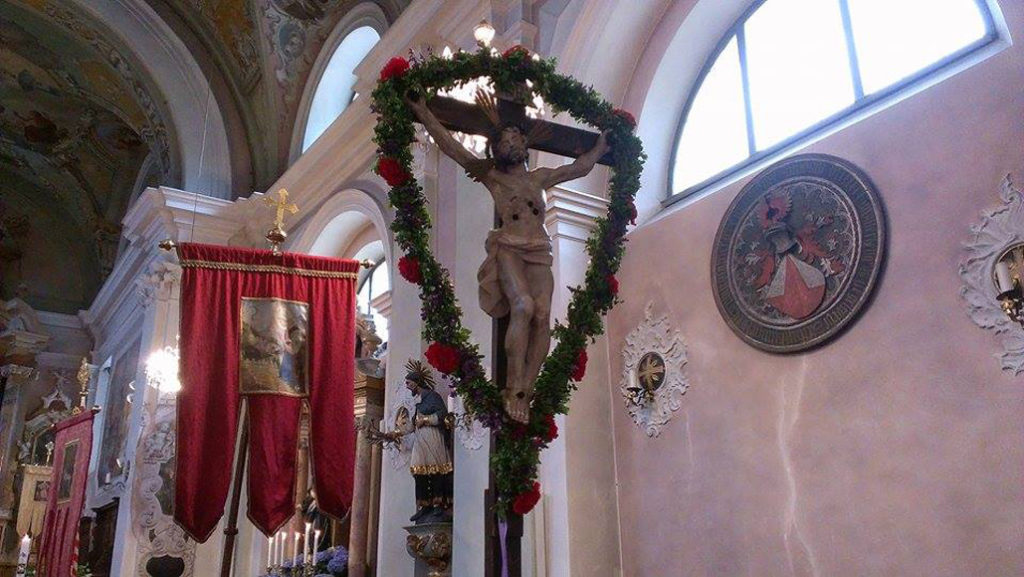 In St. Johann wird in der Kirche Halt gemacht, wo eine Messe gefeiert wird. Dann führt der Kreuzgang weiter durch die Dörfer Tal-auswärts bis nach Bruneck. Von dort geht’s dann bis nach Ehrenburg. Vorangetragen wird das Wallfahrerfähnlein und das bekannte durchschossene Kreuz aus Heilig Geist.