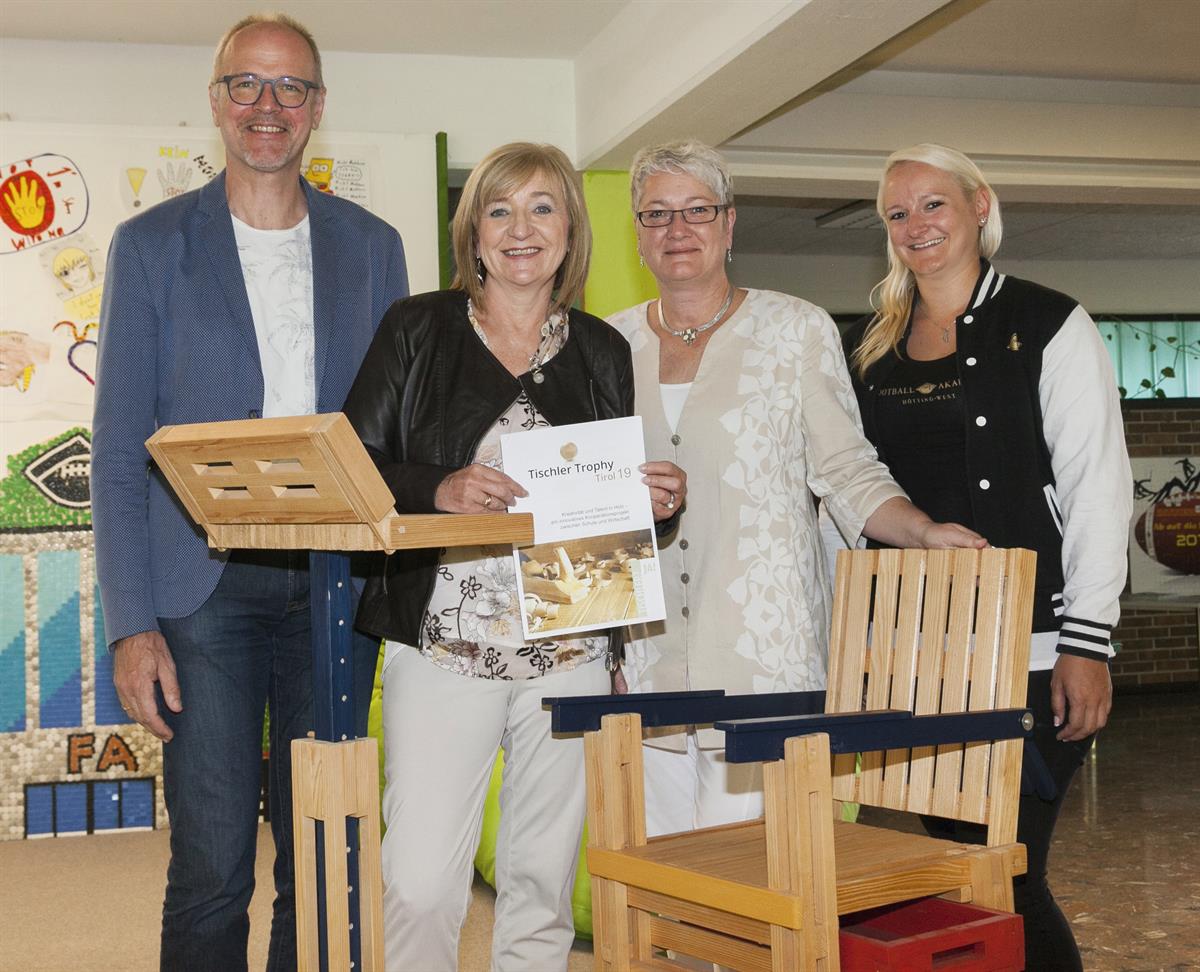 Bei der Tischler Trophy gestalten und bauen die teilnehmenden Schülerteams über vier Monate hinweg jeweils ein Möbelstück. Aufgabe ist es, aus den zur Verfügung gestellten Materialien, einfachen Holzlatten, einen kreativen und einmaligen Raumteiler in Farbe zu erstellen. Unterstützt werden sie dabei von ihren Lehrerinnen und Lehrern sowie von einem Patronanztischler für jedes Team, der sie begleitet und praktische Tipps gibt. Die gestalteten Möbel wurden im Mai 2019 von einer ausgewählten Jury bewertet und werden im Rahmen einer großen Abschlussveranstaltung am 27. Juni 2019 ausgezeichnet. Auf die Schüler warten Klassenkassenpreise im Gesamtwert von knapp 4.000 Euro.