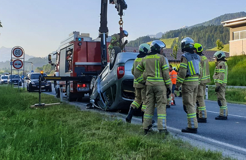 Der Fahrer als auch der 18-jährige Beifahrer aus Deutschland konnten sich selbst aus dem Fahrzeug befreien. Beide wurden mit leichten Verletzungen in das Krankenhaus von St. Johann eingeliefert.