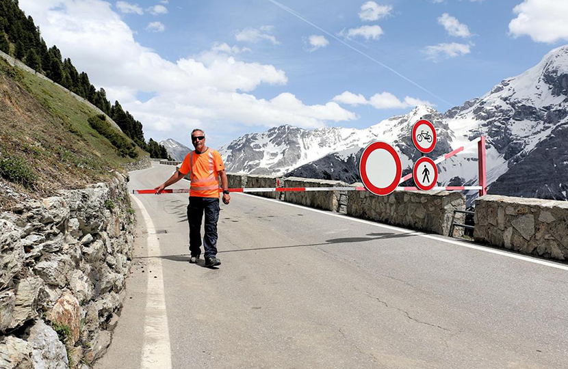 Die Mitarbeiter des Straßendiensts haben, wie jedes Jahr, bereits im April mit der Schneeräumung der Straße auf das auf 2757 Metern Meereshöhe gelegenen Stilfser Joch begonnen.