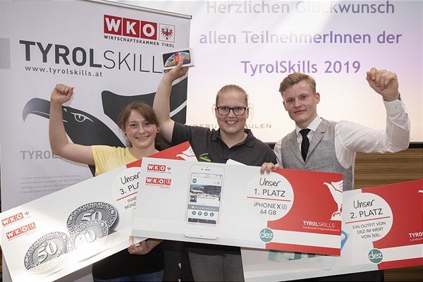 Insgesamt stellten sich 19 Lehrlinge, die sich über Ausscheidungen an den Tiroler Fachberufsschulen qualifiziert haben, der Experten-Jury. Für die besten Lehrlinge gab es dabei nicht nur Startplätze für den diesjährigen Bundeslehrlingswettbewerb, sondern zudem wertvolle Sachpreise. Über den Sieg und ein nagelneues IPhone XS 64GB durfte sich schließlich Verena Ager aus Wörgl freuen. Sie absolviert ihre Lehre beim Raiffeisen-Lagerhaus Hopfgarten-Wörgl und Umgebung. Platz Zwei und ein Shopping-Gutschein im DEZ im Wert von 500 Euro ging an Elias Neururer aus Imst vom Lehrbetrieb Stigger Mode und den dritten Platz sowie Innenstadtmünzen im Wert von 300 Euro holte sich Kerstin Pfefferle aus Wenns vom Lehrbetrieb Tiroler Bienenladen.