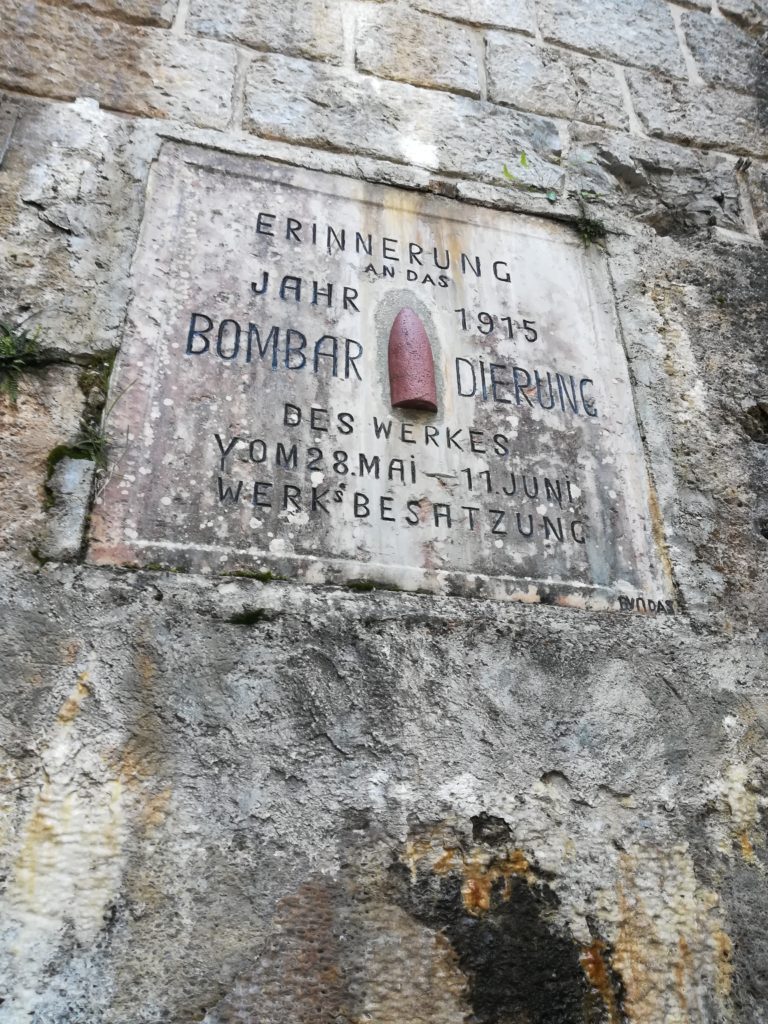 Uscendo da Forte Belvedere sicuramente non si può dimenticare quello che possono aver provato i soldati durante gli assalti e i bombardamenti. Nelle postazioni da dove sparavano e partivano le cannonate è posta una registrazione di spari e colpi di cannone. Tutto rintrona! Noi oggi ascoltiamo quei fragori per pochi minuti ci spaventano e ci incutono paura. Non possiamo nemmeno immaginare quello che hanno provato i militari in 15 giorni di bombardamento ininterrotto dal 28 maggio all’undici giugno del 1915. Poveri uomini, stringe il cuore a pensarci. Fra quelle mura, in quelle gallerie, fumo, rimbombo, spari, bombe, cannonate, ordini degli ufficiali, trambusto, paura di morire, uccidere per non essere uccisi. E … dopo il bombardamento le grida dei feriti che con il passare delle ore diventava un gemito sempre più flebile, fino a spegnersi, forse erano stati curati e salvati o forse erano morti. Nel forte c’era anche una cella per i morti che non potevano essere subito seppelliti. Non c’è sicuramente da meravigliarsi se alcuni diventavano pazzi o si auto lesionavano per poter essere mandati in ospedale e uscire da quell’inferno.