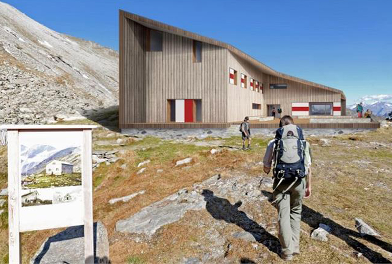 Die Edelrauthütte liegt auf 2545 Metern Meereshöhe am Eisbruggjoch, einem Übergang zwischen dem Pfunderer und dem Lappacher Tal in den Zillertaler Alpen in Südtirol. Sie ist eine der 26 Schutzhütten, die das Land vom Staat übernommen hat. Das Gebäude war so schlecht erhalten, dass es abgerissen und wiederaufgebaut werden musste. Die neue Schutzhütte ist ein L-förmiges Holzgebäude, fügt sich sehr gut in die Landschaft ein und bewahrt symbolisch eine Spur des alten Gebäudes. Die Infrastruktur ist kompakt, nach Norden geschlossen und nach Süden offener. Bei der Ausrichtung des Gebäudes und den Anlagen zur Energie- und Wasserversorgung werden die drei Elemente Sonne, Wasser und Wind genutzt. Konstruiert wurde die Hütte mit vorgefertigten Elementen aus Holz, ganz im Zeichen ökologischer Nachhaltigkeit.