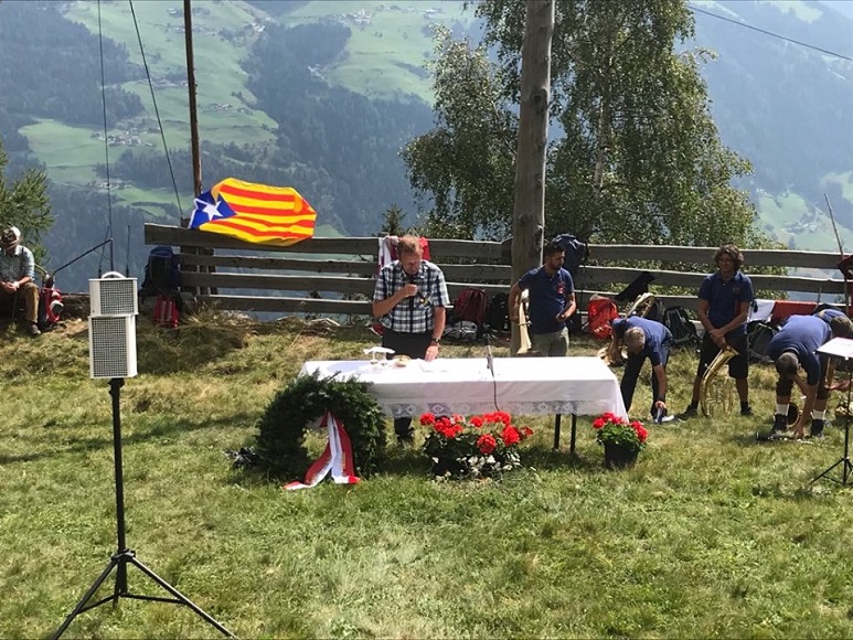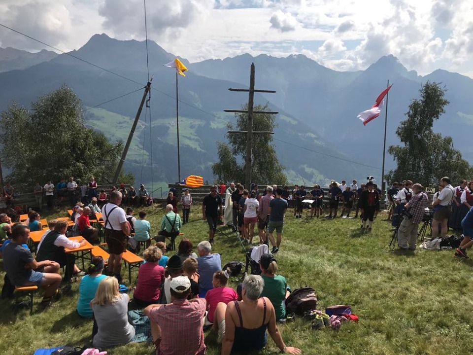 Bilder UT24/Elmar Thaler: Gedenkfeier am Platz des Verbrechens, „Brunner Mahdern“ oberhalb von Saltaus in Passeier, in 1544 Meereshöhe.