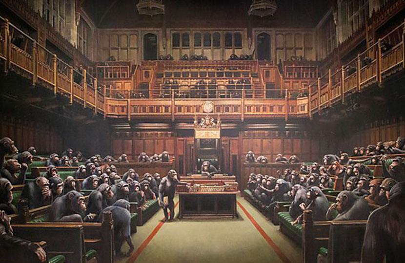 „Unabhängig davon, auf welcher Seite man in der Brexit-Debatte steht, gibt es keinen Zweifel, dass dieses Werk heute relevanter ist als jemals zuvor“, hatte Sotheby’s vor der Auktion erklärt. Banksy habe die kompliziertesten politischen Situationen der Gesellschaft in nur einem einzigen Bild destilliert, schwärmte Alex Branczik, der bei Sotheby’s für zeitgenössische europäische Kunst verantwortlich ist. „Was wir in den vergangenen Wochen und Monaten im Unterhaus gesehen haben, ist zu einer täglichen Seifenoper geworden.“ Mit dem Gemälde zeige Banksy den Rückschritt der ältesten parlamentarischen Demokratie in eine Welt von tribalistischem, animalischem Verhalten.