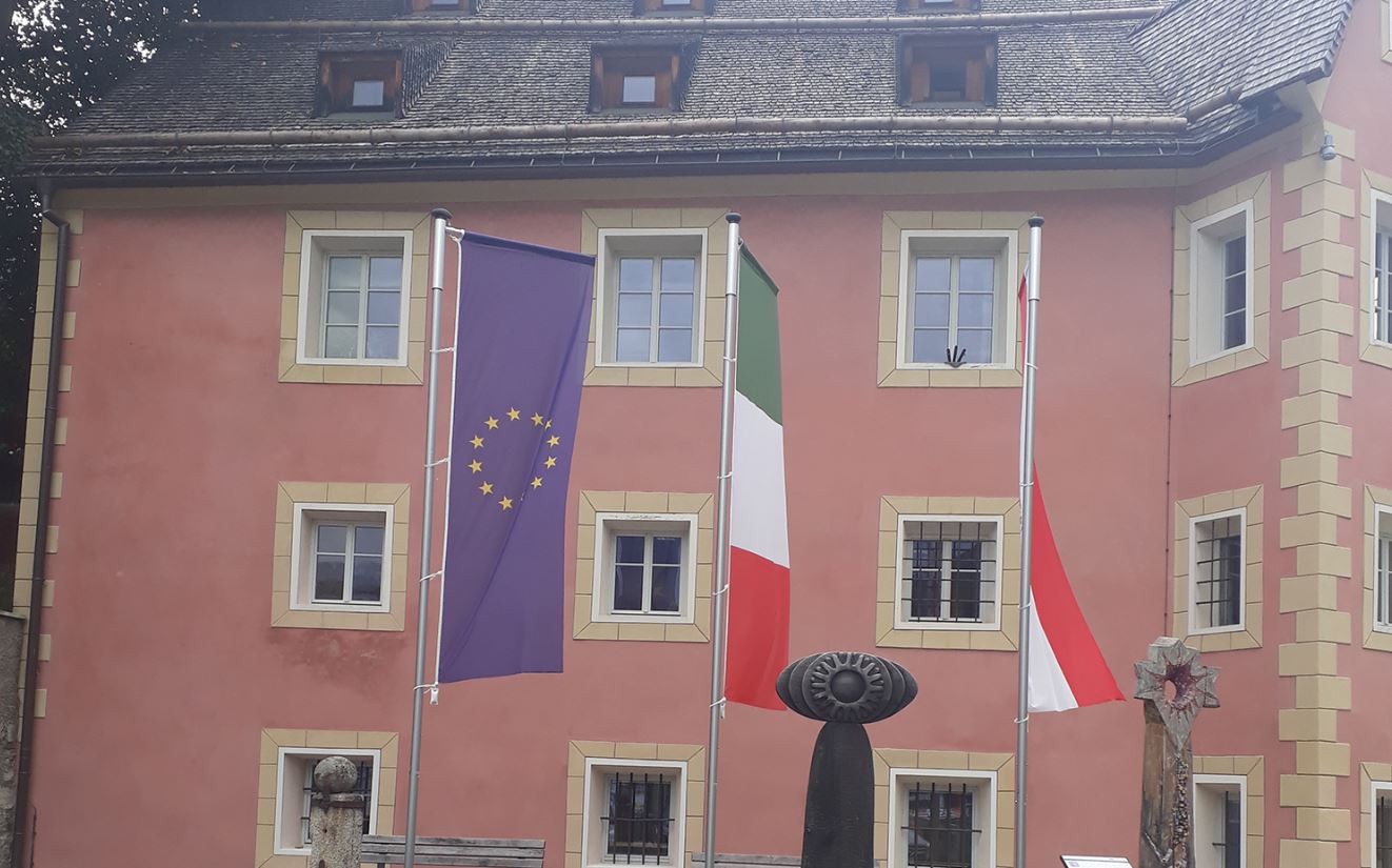 Italienische Fahne vor dem Gemeindehaus im Ahrntal