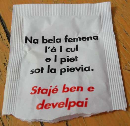 Post, commenti e polemica a iosa – pare – sui social e sulla stampa, per il proverbio ladino che campeggia, insieme a tanti altri, sulle bustine di zucchero che si trovano nei locali pubblici in Val di Fassa: “Na bela femena l’à l cul e l piet sot la pievia“. Â