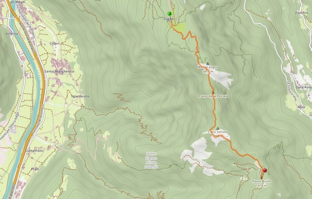Percorso: Fra i tanti percorsi possibili, indichiamo quello che parte da Rovereto. Sulla SP89 si sale lungo la stradina di montagna che porta al Rifugio Coni Zugna. Lasciata l’automobile, prendere il sentiero n. 115 che lungo una strada forestale conduce al Parco della Pace, dove si possono ancora vedere i ruderi di una nostra linea di difesa. Da qui lungo un sentiero si scende fino al Passo della Portela che porta attraverso terreno roccioso lungo le pareti del Coni Zugna e di Cima Selvata e quindi a Passo Buole. La via di ritorno segue lo stesso percorso dell’andata.