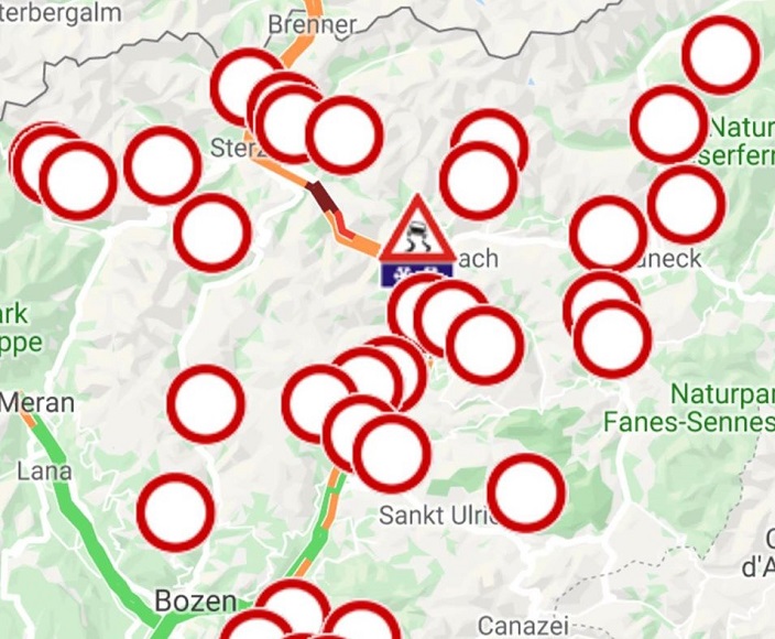 Die Autobahn A22 ist derzeit zwischen Vahrn und Sterzing wegen einer gebrochenen Stromleitung komplett gesperrt (Nord- und Südspur). Es gibt keine Umleitung.