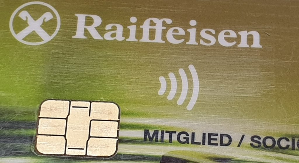 Bankomatkarte von Raiffeisen mit Wellensymbol (Bild: UT24/su)