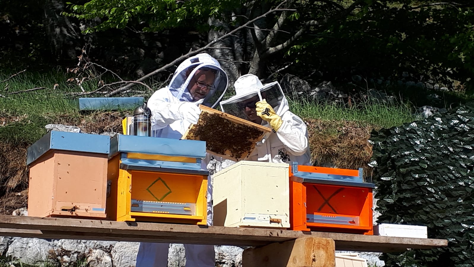 Fin da subito ho coinvolto in questa passione anche la mia famiglia e il mio ragazzo, che sono spesso in apiario con me e con i quali condivido gli interrogativi che ci si pone regolarmente sui lavori di stagione; potrebbe infatti sembrare che le api „facciano tutto da sole“ ma oggigiorno non è più così. L’uomo le ha purtroppo messe nella condizione di dover affrontare pesanti minacce – dai pesticidi all’acaro varroa e la vespa velutina, solo per menzionare quelle più conosciute – ed è quindi necessario aiutare gli alveari a far fronte a queste continue e gravi difficoltà .