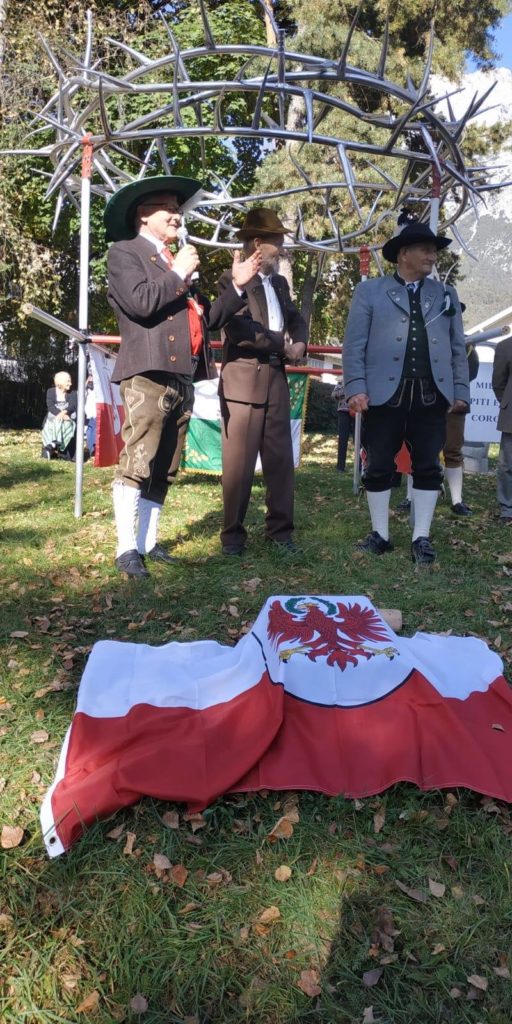 In seinem Grußwort dankte der Obmann des Vereines „NOI TIROLESI/ WIR TIROLER“, Erino Stedile, dem SHB für die gute Zusammenarbeit bei der Aufstellung ihrer Dornenkrone am 4. November hinter dem „Lügentempel“ in Bozen. Mit dieser Aktion sollte an die Opfer und Erniedrigungen aller Tiroler seit dem ersten Weltkrieg gedacht werden. Einen guten Verlauf der Versammlung wünschte im Namen der Kameradschaft der ehemalige Südtiroler Freiheitskämpfer auch deren Sprecher Dr. Erhard Hartung.