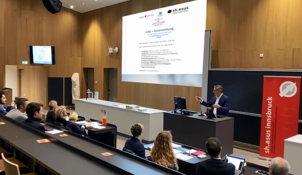 Landesrat Widmann hat kürzlich in Innsbruck Medizinstudierende über das Gesundheitswesen und die Arbeitsbedingungen in Südtirol informiert. (Foto: LPA)
