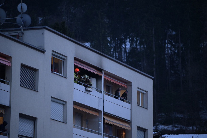 Um 16.55 Uhr bemerkt eine Nachbarin ein offenes Feuer auf diesem Balkon und ein zufällig vorbeigehender Feuerwehrmann (28-j. Tiroler) der Freiwilligen Feuerwehr Völs bemerkt dies ebenfalls.