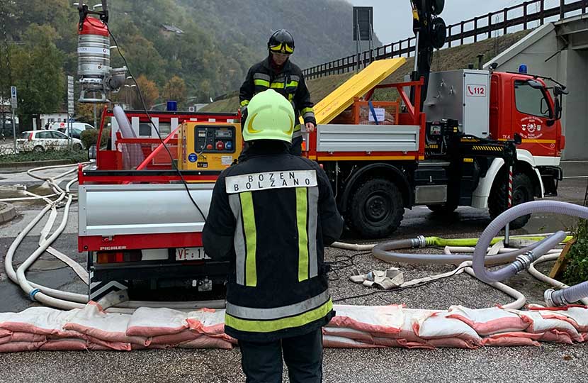 Und auch im Herbst verschonte das Wetter die Landeshauptstadt nicht. Aufgrund von anhaltenden überdurchschnittlich starken Niederschlägen, rückte die Freiwillige Feuerwehr Bozen im November in knapp einer Woche zu 59 Einsätzen aus. Neben Überschwemmungen und Wasserinfiltrationen an Wohngebäude wurden auch mehrere Infrastrukturen durch den anhaltenden Regen beschädigt.