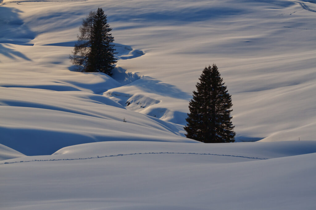 Durante l’inverno, è ormai sempre più frequente imbattersi in escursionisti che, muniti di ciaspole, intraprendono lunghe ore di camminata per godere del profilo di una natura, che coperta dalla neve, assume un volto ricco di essenzialità e semplicità .