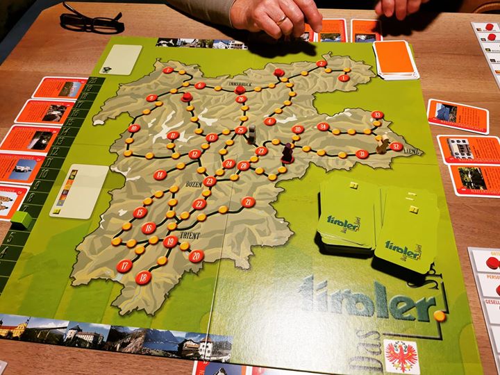 Con una particolarità : il percorso nemmeno troppo immaginario delle caselle accompagna i giocatori in giro per l’intero Tirolo. Intero sul serio, da Kufstein a Borghetto, da Resia a Campitello, da Dobbiaco a Vermiglio. Non per niente si chiama appunto DAS TIROLER SPIEL, il gioco tirolese.