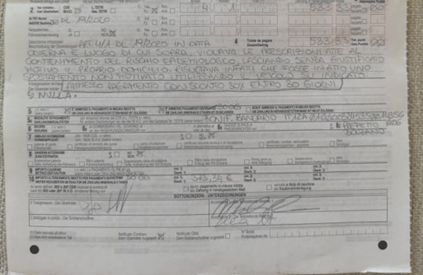 Südtirolerin muss trotz Eigenerklärung 373,34 Euro Strafe zahlen