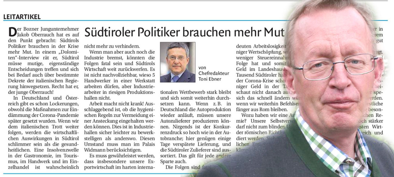 Beim lesen Deines Leitartikels ist mir der Schluss des Berichtes von Kanonikus Gamper im Volksboten vom 19. August 1920 mit dem Titel „Was nun?“ eingefallen: