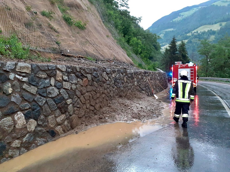 Die Wehrmänner werden zu Einsätzen wegen umgestürzter Bäume, abgerissener Äste, abgegangener Muren und Überschwemmungen, wie etwa in Riffian, Ehrenburg, Terenten und Thuins gerufen.