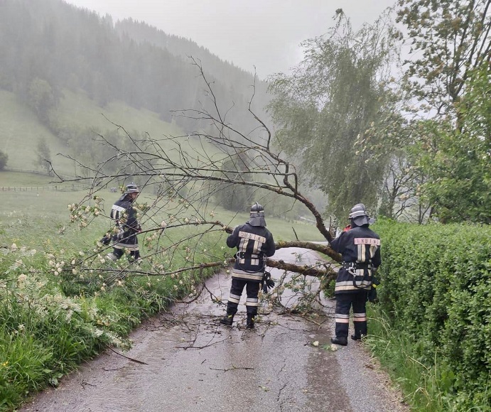 Die Wehrmänner werden zu Einsätzen wegen umgestürzter Bäume, abgerissener Äste, abgegangener Muren und Überschwemmungen, wie etwa in Riffian, Ehrenburg, Terenten und Thuins gerufen.