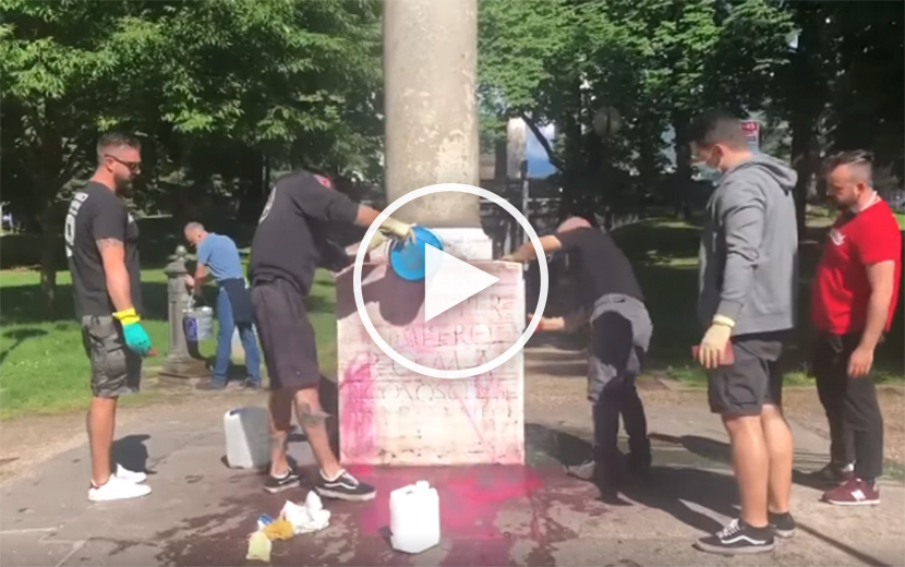 Dass den Neofaschisten von CasaPound derartige Schmierereien ein Dorn im Auge sind, liegt auf der Hand. Andrea Bonazza und seine Anhänger haben sich deshalb zusammengetan, um die faschistische Säule von der hellen Sprayfarbe wieder zu befreien.