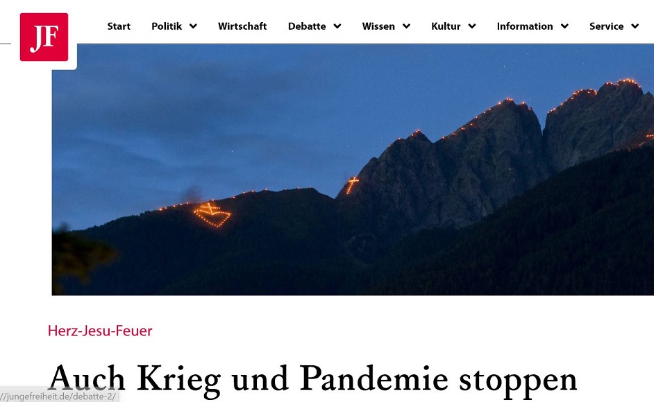 „Die Herz-Jesu-Prozessionen sind gut besucht, die Kirchen an diesem Sonntag voll und in allen Tälern brennen die Herz-Jesu-Feuer, typischerweise auch in Form religiöser und politischer Motive: Herzkreuze, betende Hände, Tiroler Adler, Schriftzüge mit „Tirol“ oder „Herz Jesu“ oder Ketten auf den Bergkämmen“, schaut Steinwandter in seine Heimat.