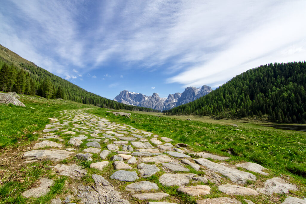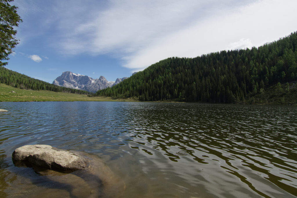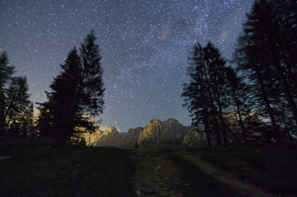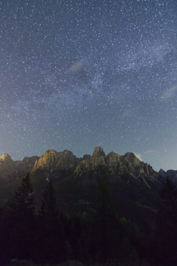 Da Forcella Calaita, raggiungibile dal rifugio Miralago Calaita in direzione nord, dopo circa 1,5 km, si giunge inoltre ad un punto panoramico che apre la vista sul gruppo delle Pale di San Martino, con il Sass Maor, che notte e giorno si rivela maestoso anche da questa particolare angolazione. E’ possibile intraprendere questo percorso anche in notturna, appunto, per poter vivere l’esperienza di una notte con vista sulle Pale, incorniciate da un cielo stellato.