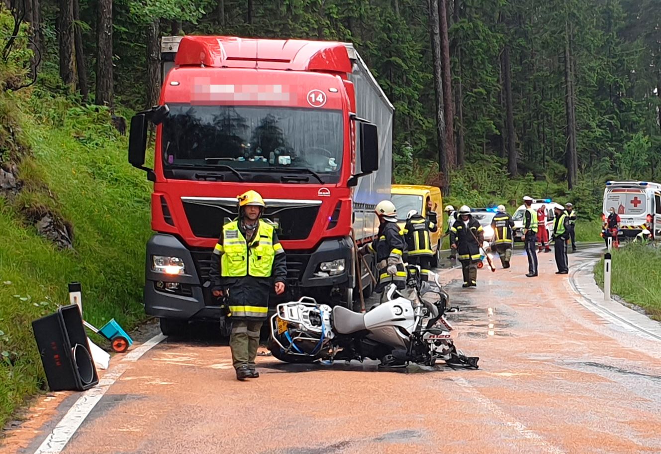 Zu einem folgenschweren Unfall ist es auf der Fernpassstrecke bei Biberwier gekommen. Ein Motorrad mit niederländischem Kennzeichen prallte am Montagvormittag frontal gegen einen Lkw. Vor Ort waren das Rote Kreuz und die Feuerwehr.