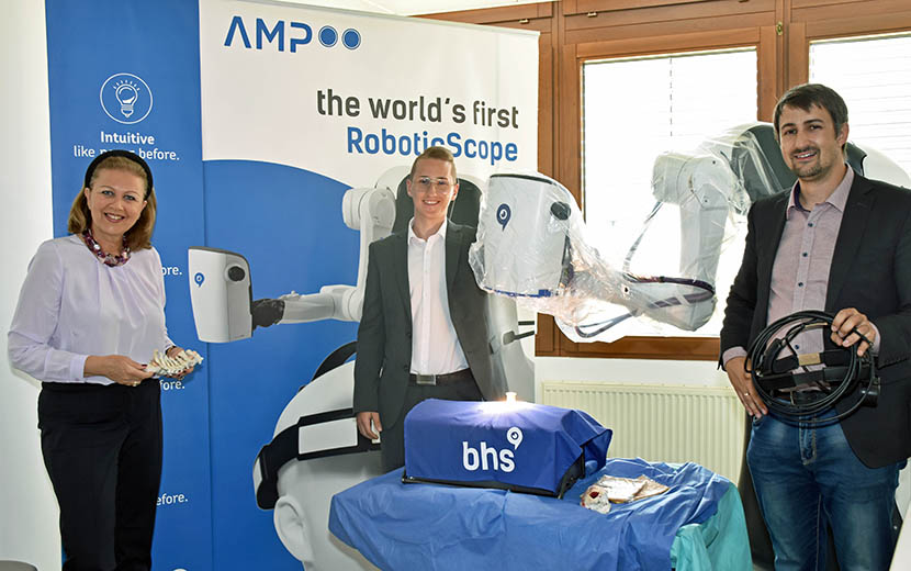 Das Vorzeigeprodukt von BHS Technologies ist das „RoboticScope“, ein dynamisches Operationsmikroskop, bei dem ein Roboterarm ein 3D-Kamerasystem über dem Operationsfeld bewegt und die Bilder live an ein Display sendet, das die ChirurgInnen am Kopf tragen. So sollen mikrochirurgische Eingriffe zügiger und ergonomischer durchgeführt werden können. „Chirurginnen und Chirurgen bedienen unser digitales Mikroskop mittels Kopfsteuerung und haben deshalb die Hände immer an den Patienten. BHS Technologies ist ein medizintechnisches Unternehmen, das es sich zur Aufgabe gemacht hat die Benutzerfreundlichkeit für Mikrochirurgen maßgeblich zu verbessern – das ist unser Alleinstellungsmerkmal“, erklärt Geschäftsführer Markus Hütter. Im Juni 2020 wurden die ersten vier Geräte exportiert, aktuell plant man bereits den Markteinstieg in den USA. „Vor allem als junges Unternehmen muss man kämpfen, kämpfen, kämpfen und sich ordentlich ins Zeug legen. Der Standort Tirol bietet attraktive Voraussetzungen für die Gründung eines Unternehmens. Das Land Tirol hat uns von Anfang an – auch bereits während des Gründungsprozesses – mit Förderungen sowie Beratungen unterstützt und uns damit sehr geholfen“, so Hütter.