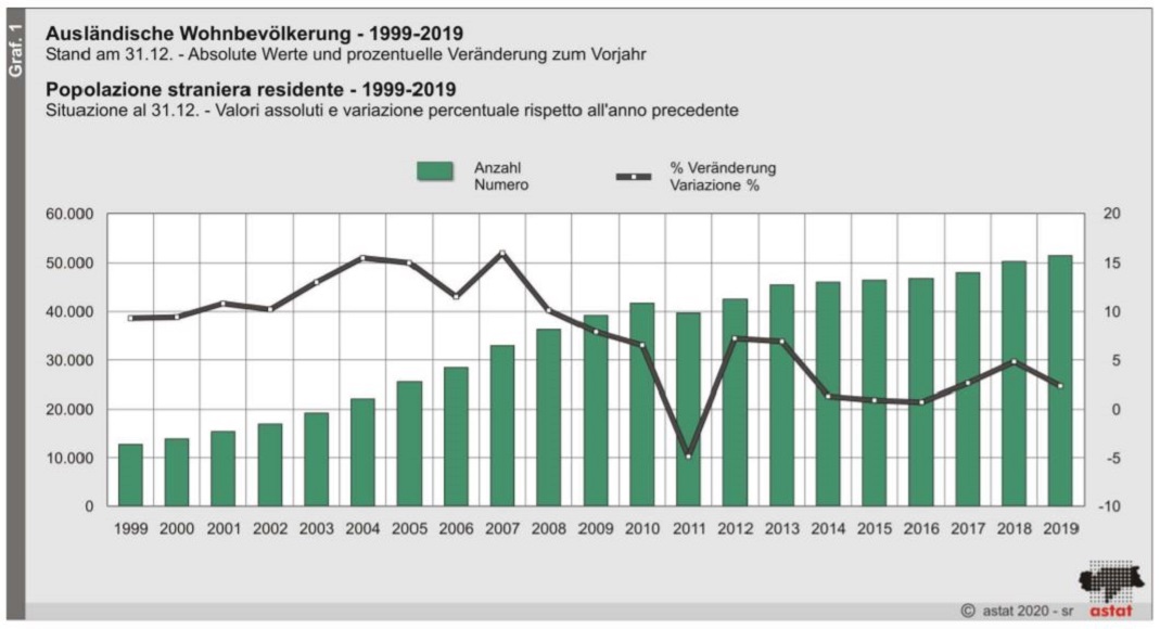 Seit den frühen 1990er-Jahren weist Südtirol eine positive Wanderungsbilanz auf, insbesondere mit dem Ausland, was eine kontinuierliche Zunahme der Ausländerzahl zur Folge hatte.