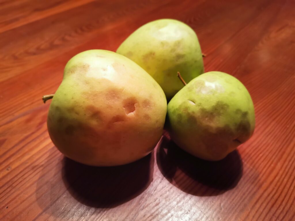 Der Hagel hat in Marling und Umgebung Schäden in der Landwirtschaft angerichtet. Der Landtagsabgeordnete Andreas Leiter Reber veröffentlichte ein Foto von durch Hagel beschädigte Äpfeln.