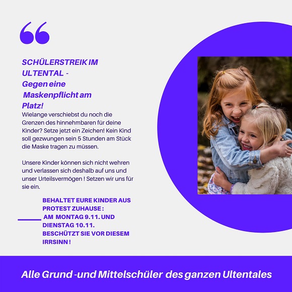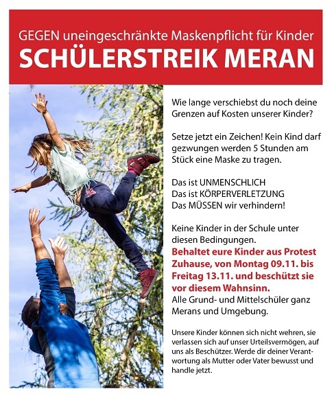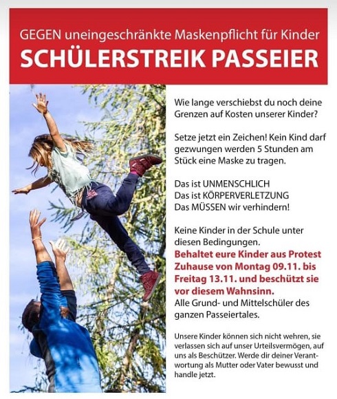 Ab Montag Schülerstreiks in Südtirol: „Gegen Maskenpflicht am Platz“