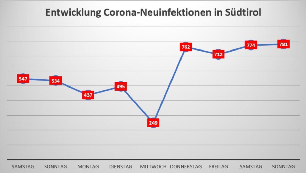 Corona: 781 Neuinfektionen in Südtirol – Vier Todesfälle