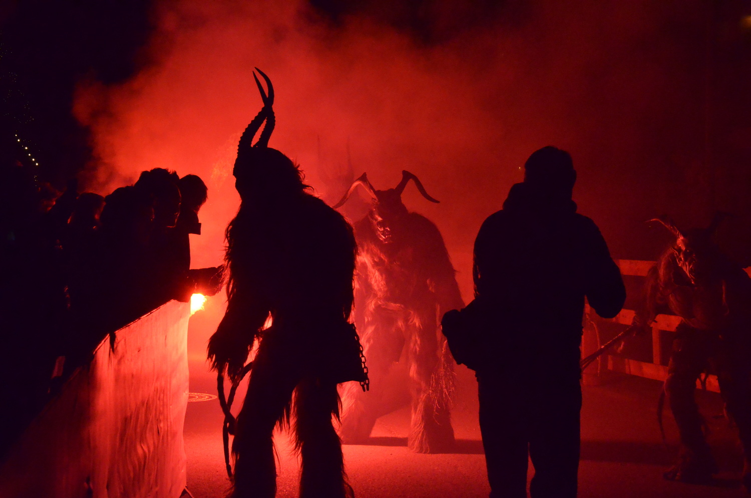 Dort können drei maskierte Krampusse angetroffen werden. Trotz mehrfacher Aufforderung anzuhalten und die Identität preiszugeben, gehen die Krampusse in Richtung Lehn weiter.